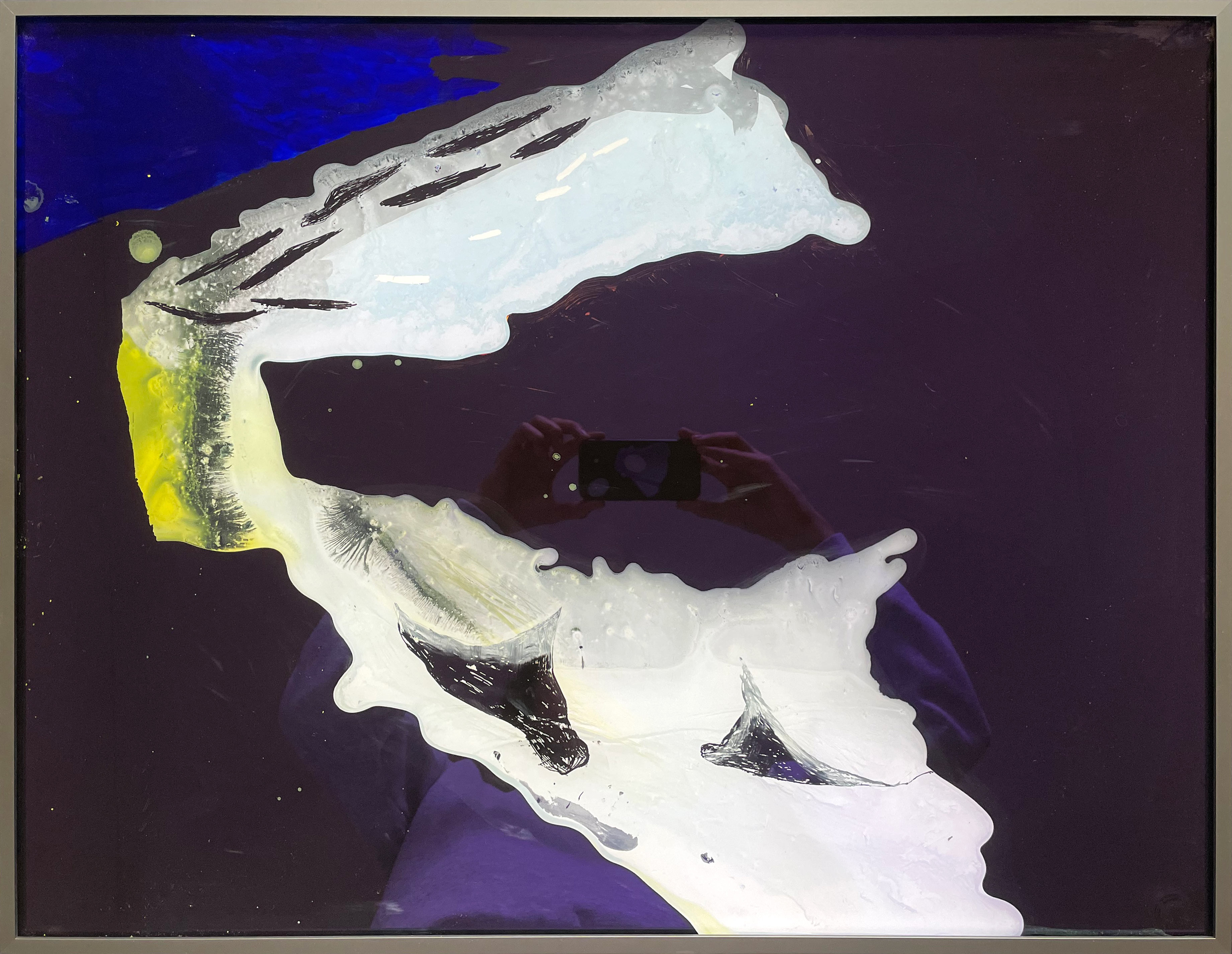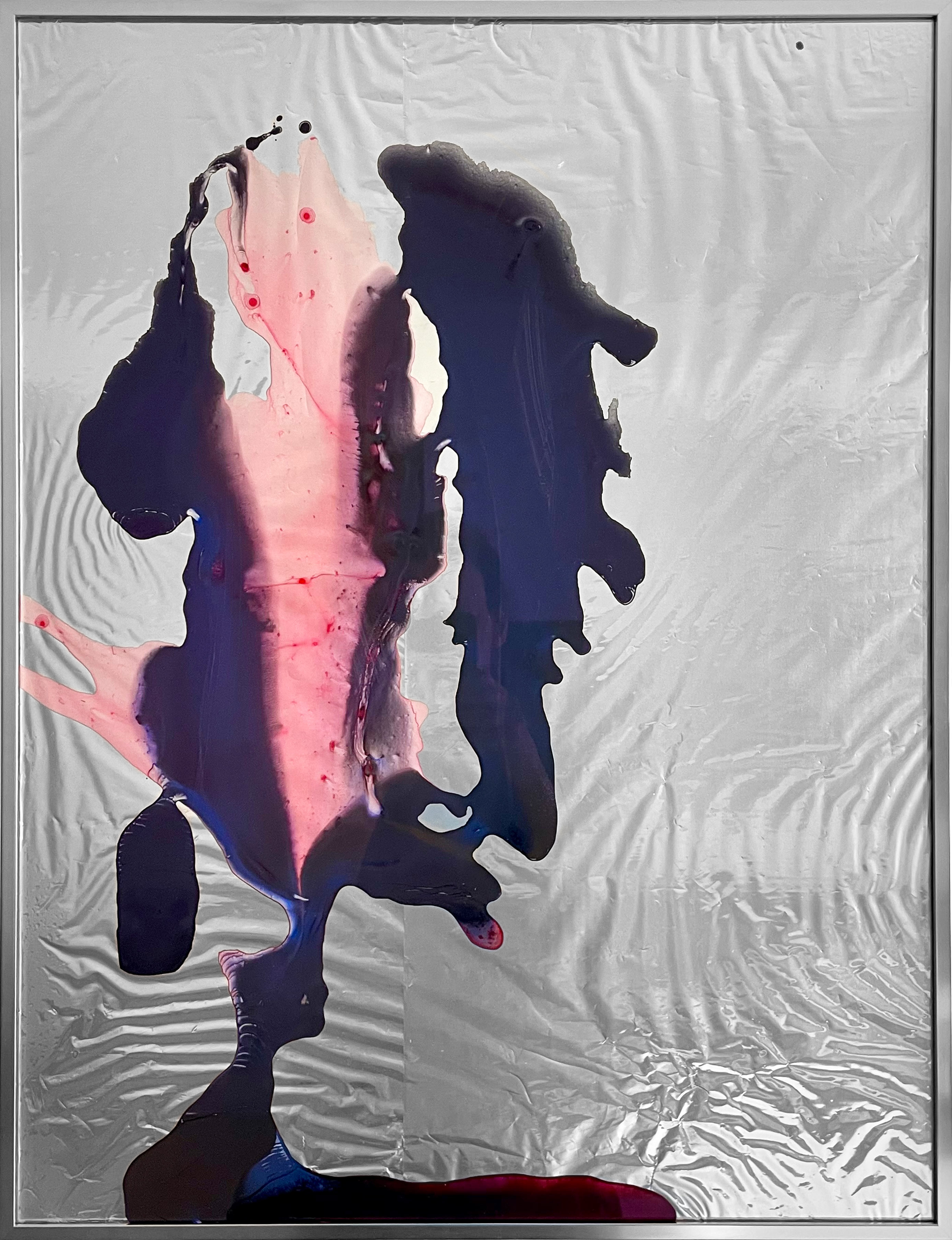 Acrylic behind non-reflective glass, aluminum foil, shopping bag, aluminum frame